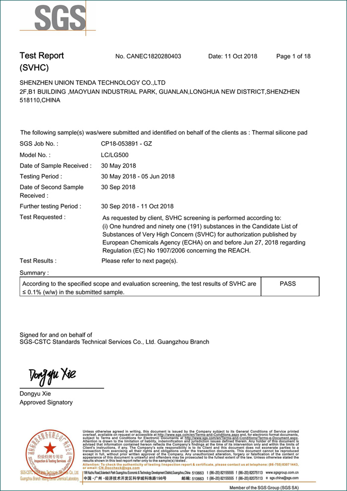 導(dǎo)熱硅膠片REACH報告