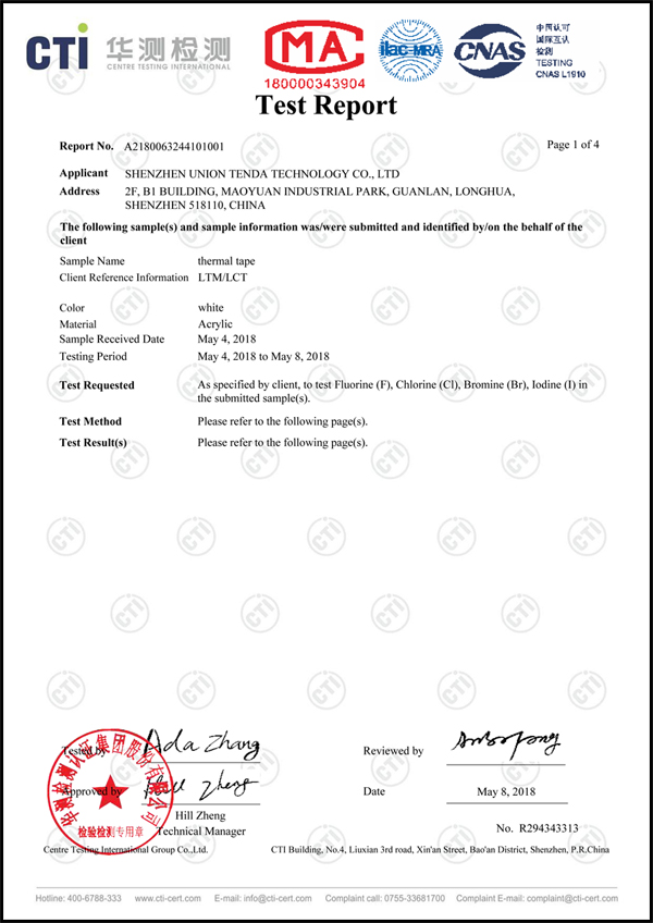 導(dǎo)熱雙面膠鹵素報告