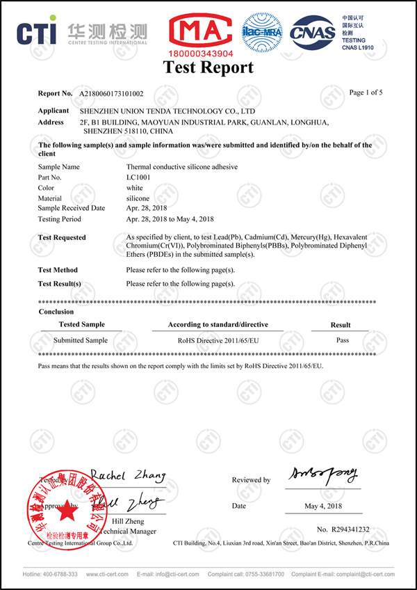 導(dǎo)熱硅膠ROHS認(rèn)證
